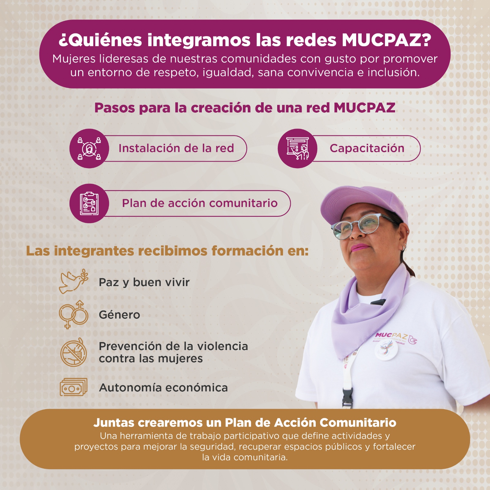 Como tus vecinas, tus hijas, tu comadre, como las que trabajan, las que llevan a sus hijos a la escuela, mujeres que a pesar de los obstáculos, se adaptan, se organizan y trabajan para trasformar su entorno y así construir una sociedad más equitativa creando lazos de paz, acompañando y sumando a otras mujeres como tú.